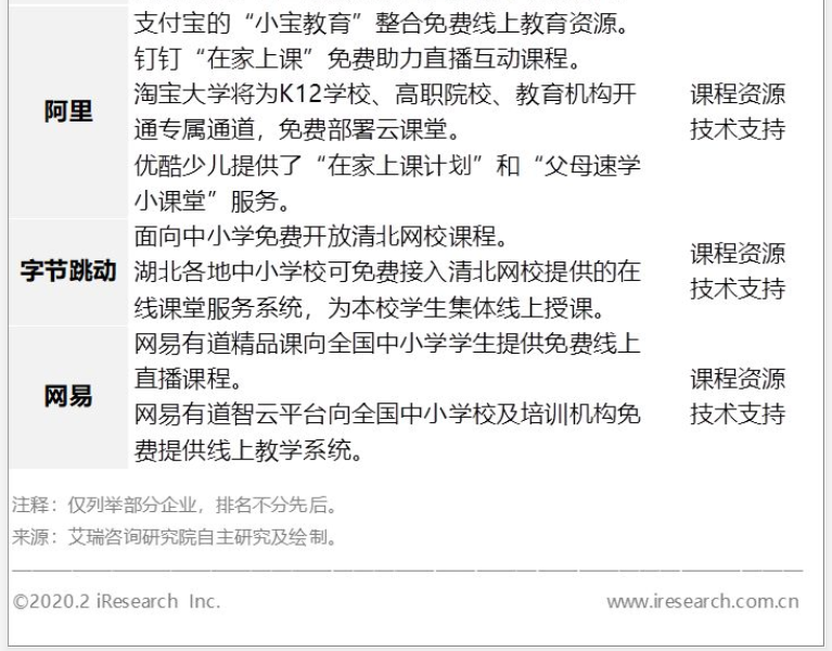 疫情之际,教育部安排22个在线课程渠道免费敞开在线课程2.4万余门。新东方在线和学而思网校收割一大波流量,猿教导、跟谁学、作业帮等头部企业也迎来了一波添加。其间,钉钉支撑了全国超 30 个省份 300 多个城市的大中小学开课,掩盖超越 5 千万学生,跟谁学招引到1500万学员报名,猿教导取得超2000万学员报名,作业帮也招引超2800万学员报名,凯叔讲故事在44天里推出了的免费课共招引全国 869万用户参加。